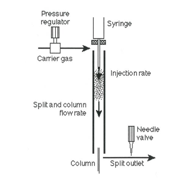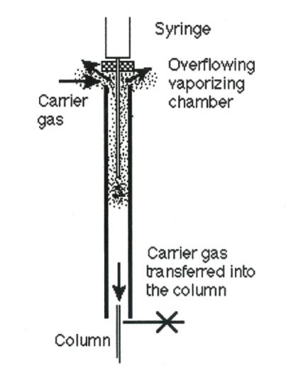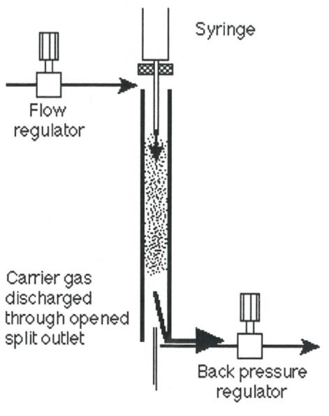图1:以与通过衬套的气体流速相等的速率注射:来自载气源的流动被离开注射器针头的流动所替代。
