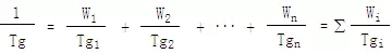 Tgn:参与聚合的各单体形成的均聚物玻璃化转变温度(单位为K);