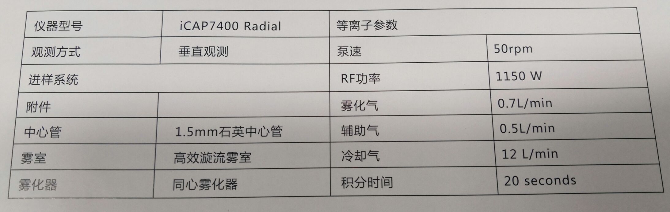 测试采用的仪器是:iCAP 7000 Radial ( Thermo Scientific ) 。
