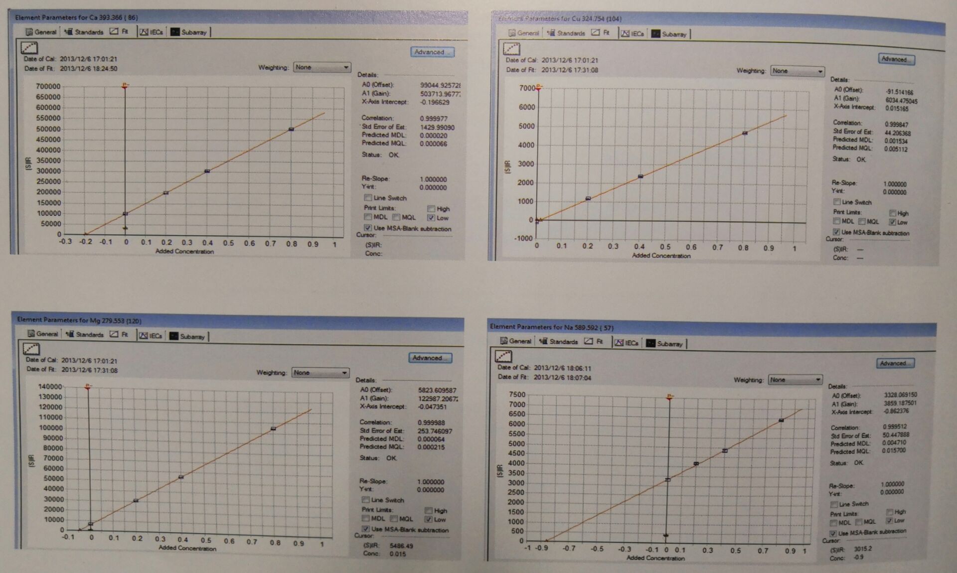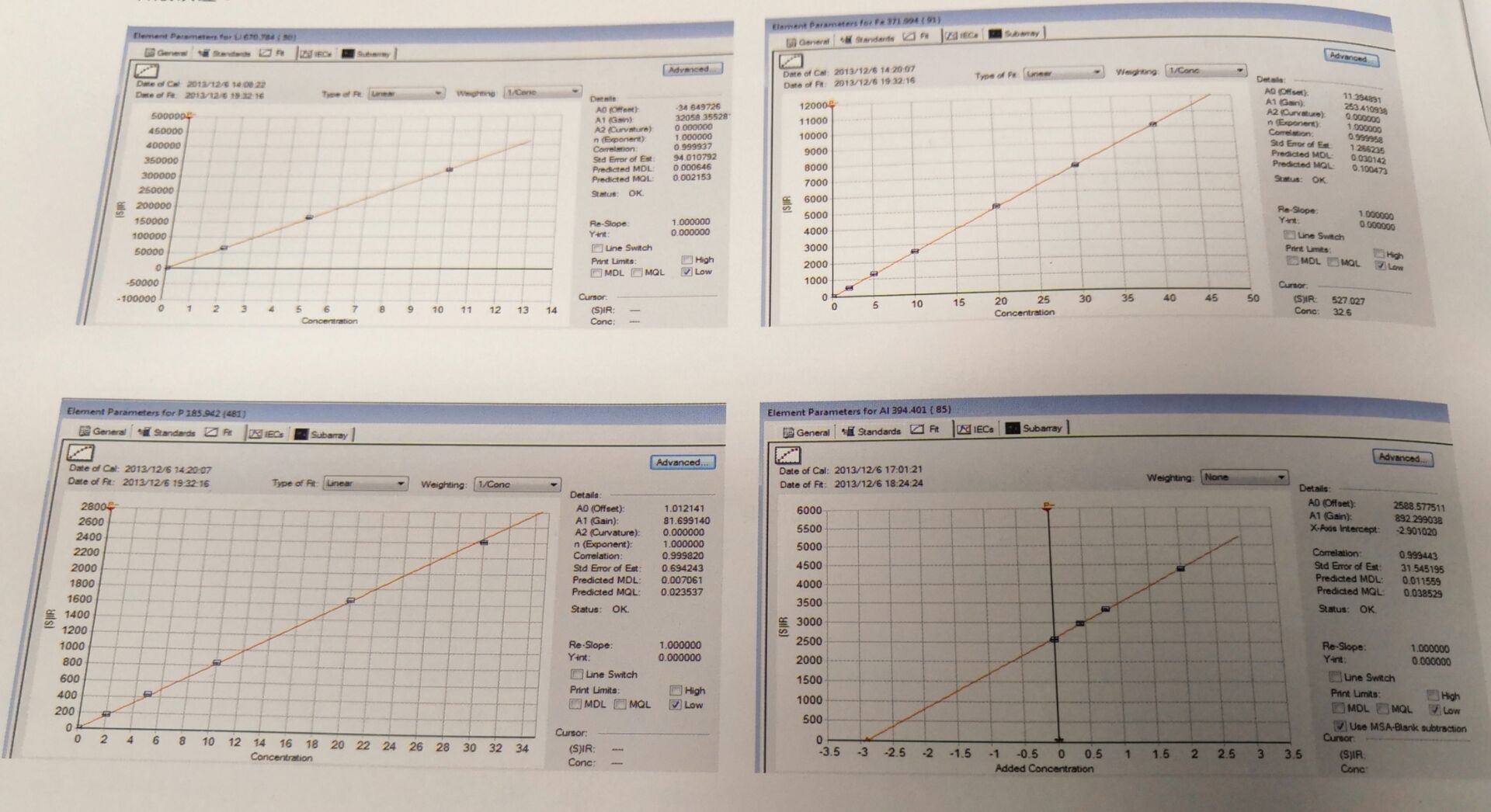 1、元素标准工作曲线 < X坐标 : 元素浓度, ppm级 ; Y坐标 : 谱线强度值, cts/s >