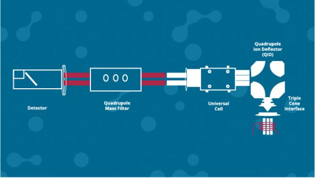 离子将不是离开等离子体的唯一物质,中性原子和光子将存在。光子会导致不正确的离子计数,因此将它们从离子路径中移除非常重要。不同的制造商如何处理这个问题有所不同,但一个常见的解决方案是放置某种形式的透镜元件,它将选择性地仅将离子弯曲到四极质谱仪中。大多数现代仪器在离子光学元件和质谱仪之间有一个“通用”或“反应/碰撞”单元,以帮助减少质量干扰。这发生在两个离子中,一个元素离子(如56 Fe)和一个分子离子(可能由样品基质和等离子体中的ar气体(如40 Ar 16 O)引起),它们在表面上具有相同的m/z值56 Amu(原子质量单位)。仅根据质谱仪的质量分辨能力很难分离这些干扰。除非消除这种质量干扰,否则测量结果将具有高背景和低检测限,这直接归因于40 Ar 16 O或其他干扰离子。