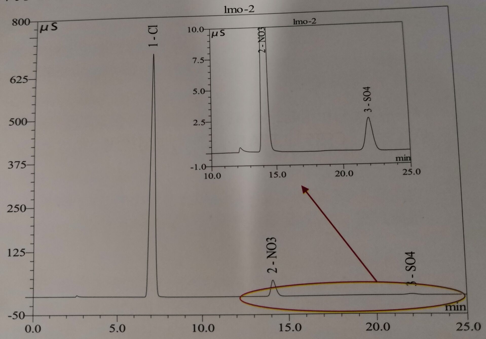图1钴酸锂中痕量硫酸根及硝酸根的分离谱图