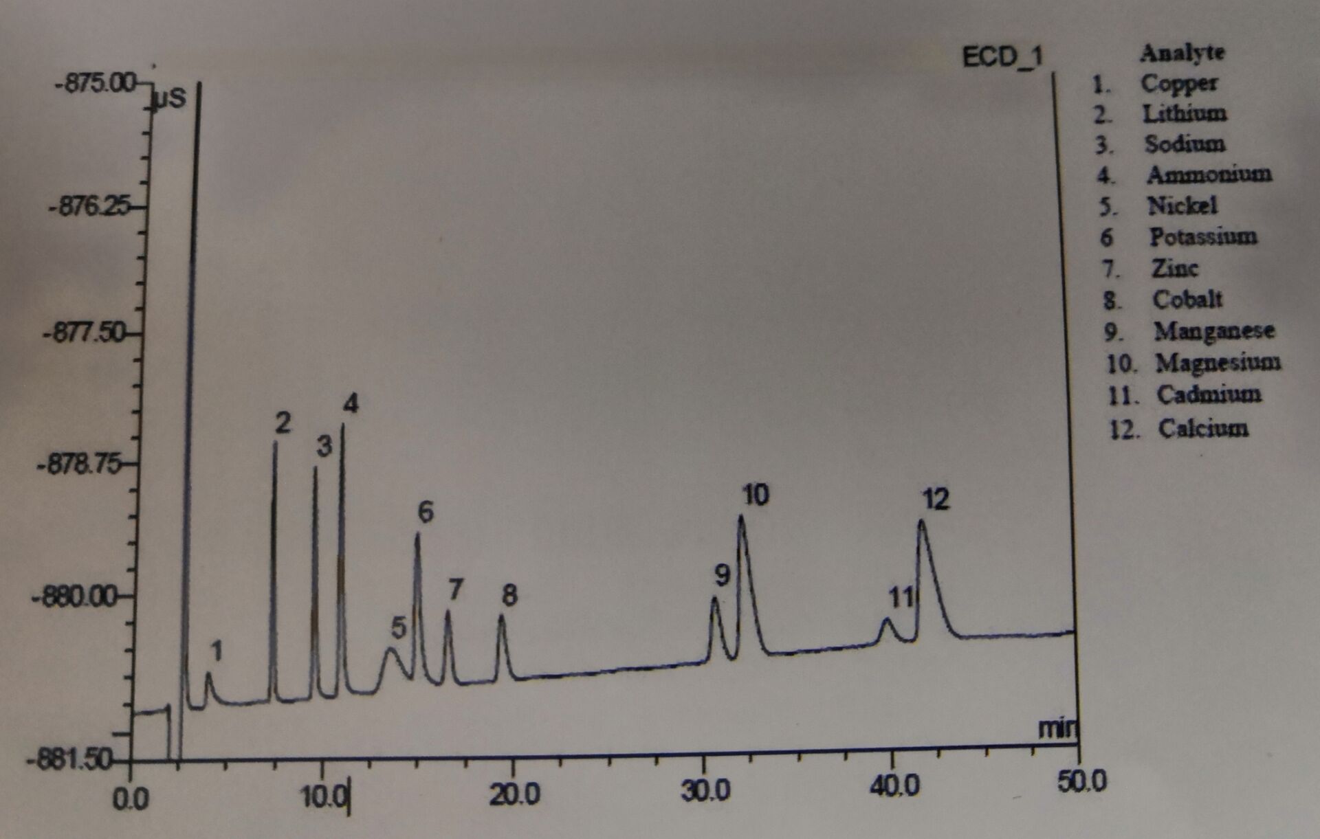 图2 非抑制离子色谱法测定常见阳离子及重金属离子