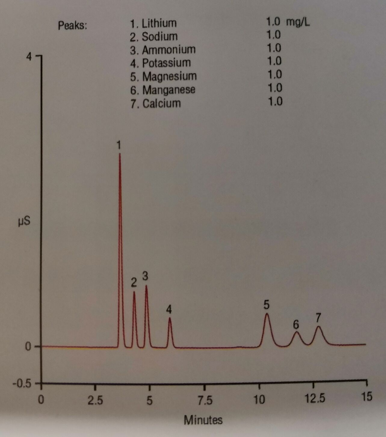 图3 离子色谱分离测定电池电解液中常见阳离子及锰离子