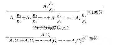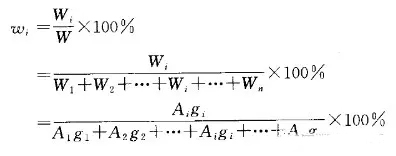 当样品中各组分均能被色谱柱分离并被检测器检出而显示各自的色谱峰,并且已知各待测组分的相对校正因子时,就可求出各组分的质量分数(或体积分数)。计算方法如下: