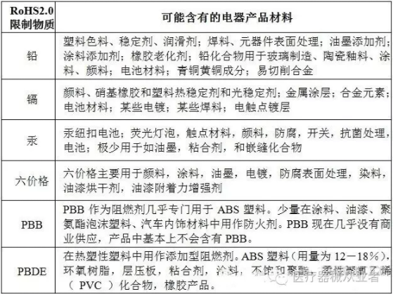 需要明确的是,并非所有医疗器械都需要满足RoHS要求,只有那些属于RoHS2.0指令定义的“电子电器设备”范围的医疗器械,才需要满足RoHS要求。