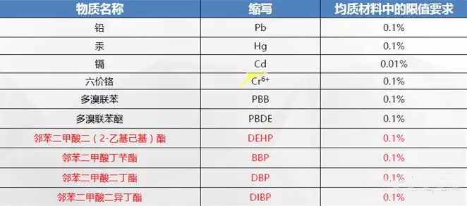 PS:RoHS2.0主要是针对新增的4项邻苯类化合物的要求