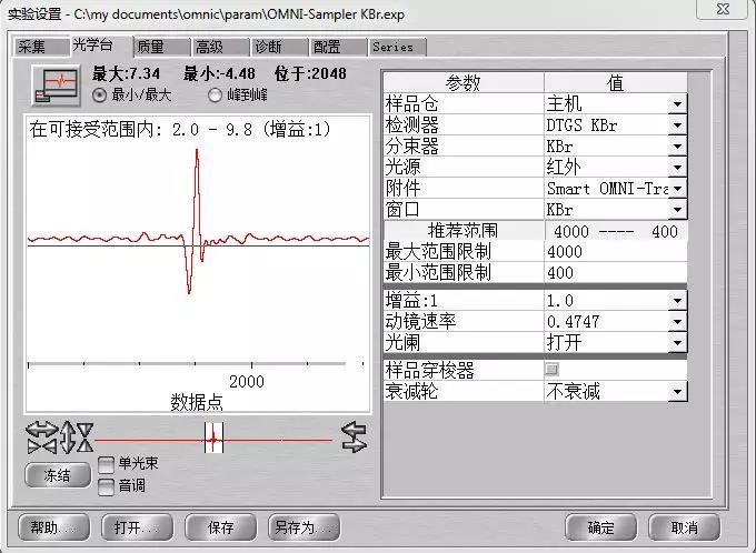 光学台界面如下图所示,确认干涉图正常且最大值信号稳定处于5.0-9.9之间。