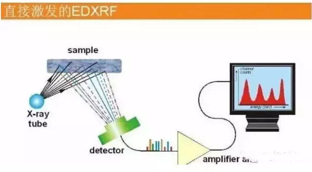 在包含某种元素1的样品中,照射壹次X射线,就会产生元素1的荧光X射线,不过这个时候的荧光X射线的强度会随着样品中元素A的含量的变化而改变。元素1的含量多,荧光X射线的强度就会变强。注意到这壹点,如果预先知道已知浓度样品的荧光X射线强度,就可以推算出样品中元素A的含量。