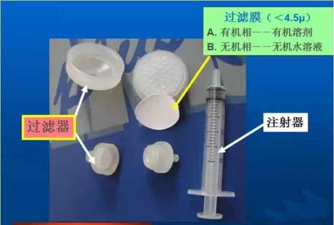f) 使用的流动相必须是HPLC级或分析纯级,特别是配置的流动相,在使用前,必须过滤掉其中的颗粒状杂质和其他物质(使用0.45μm的滤膜过滤)