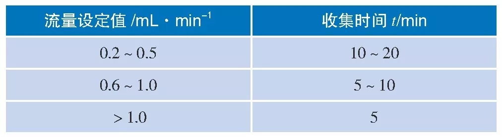 表1 泵流量设定值和收集时间